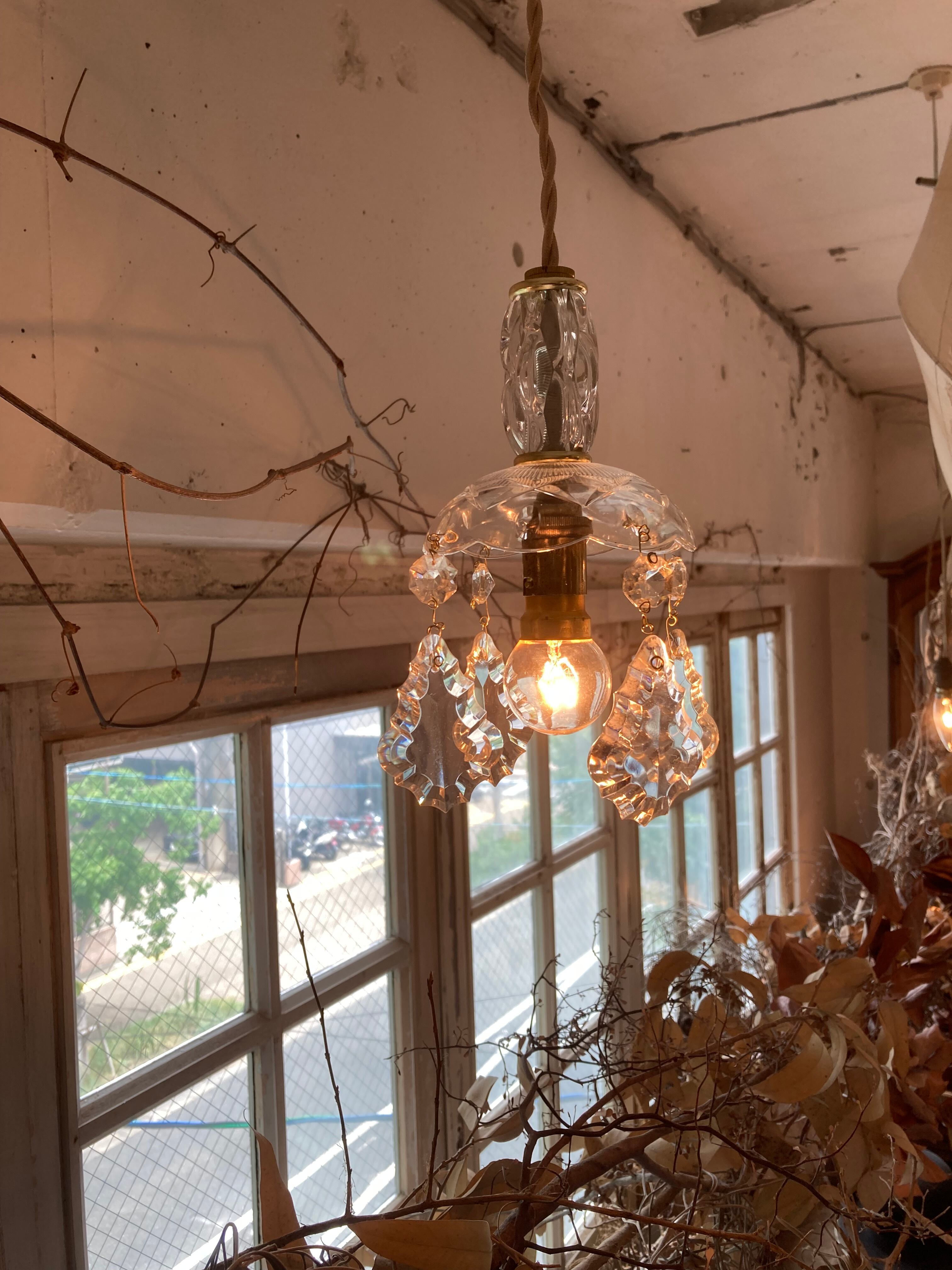 フランスの古いシャンデリアプリズムを使ったハンギングランプです。
