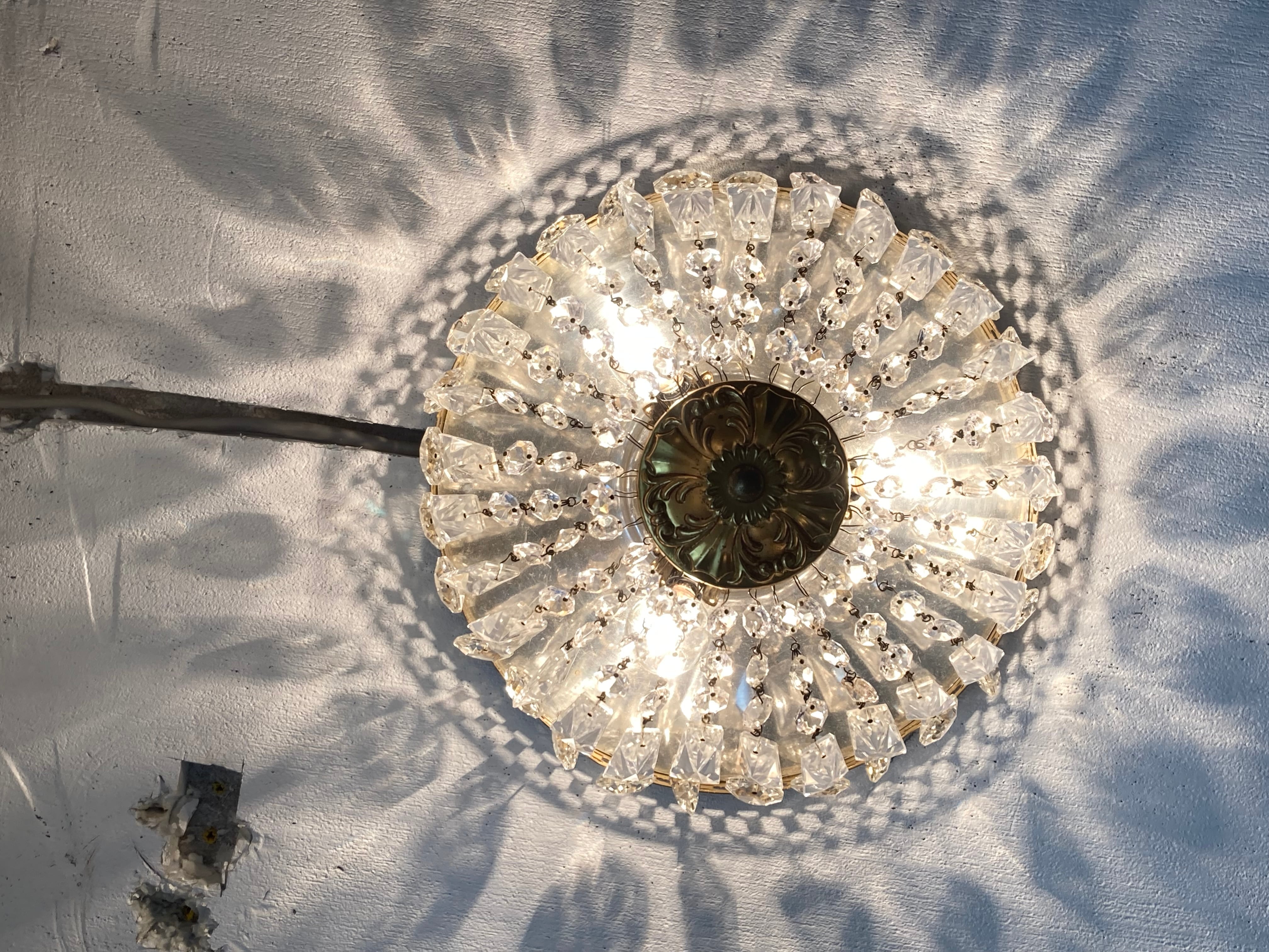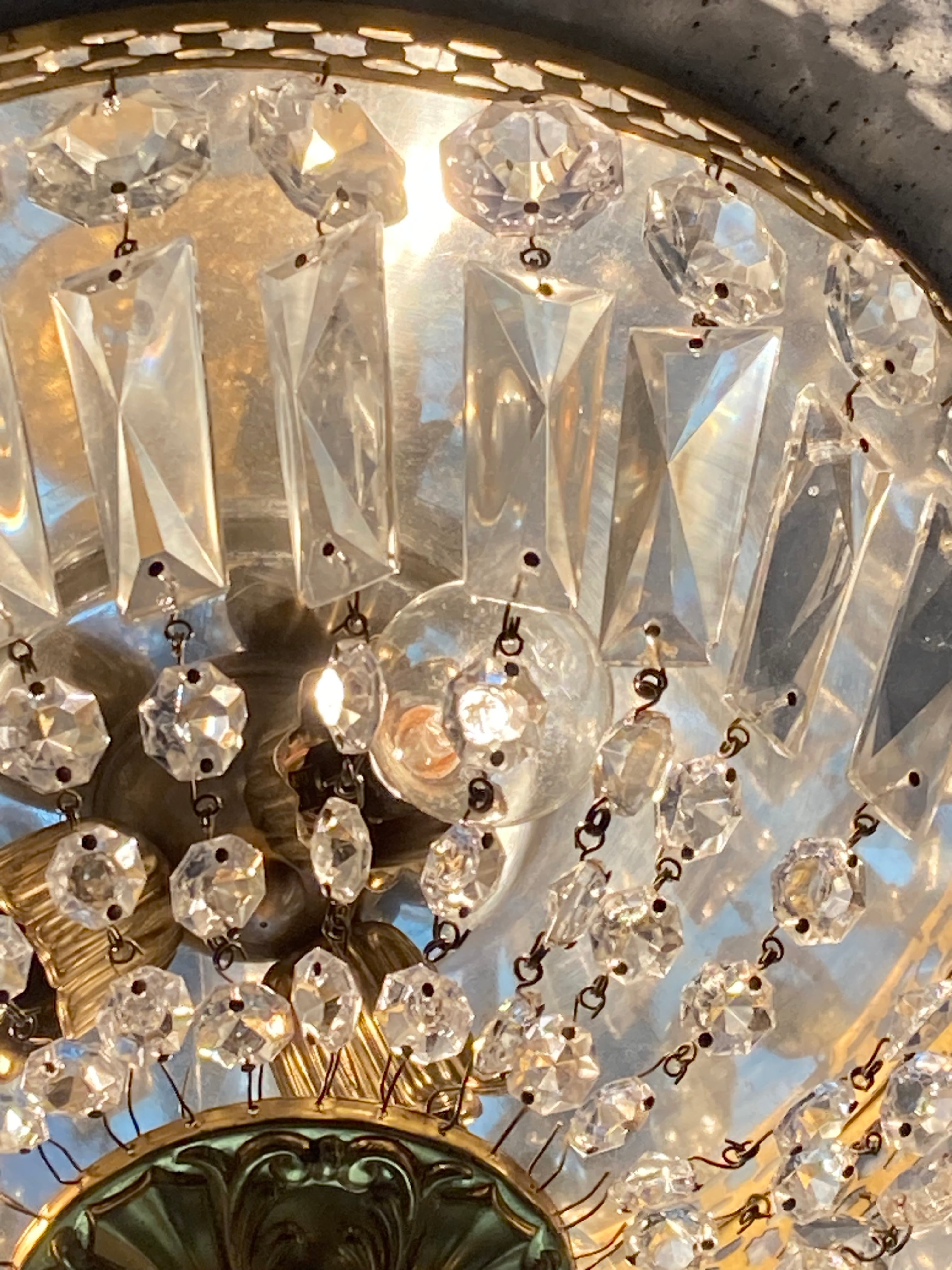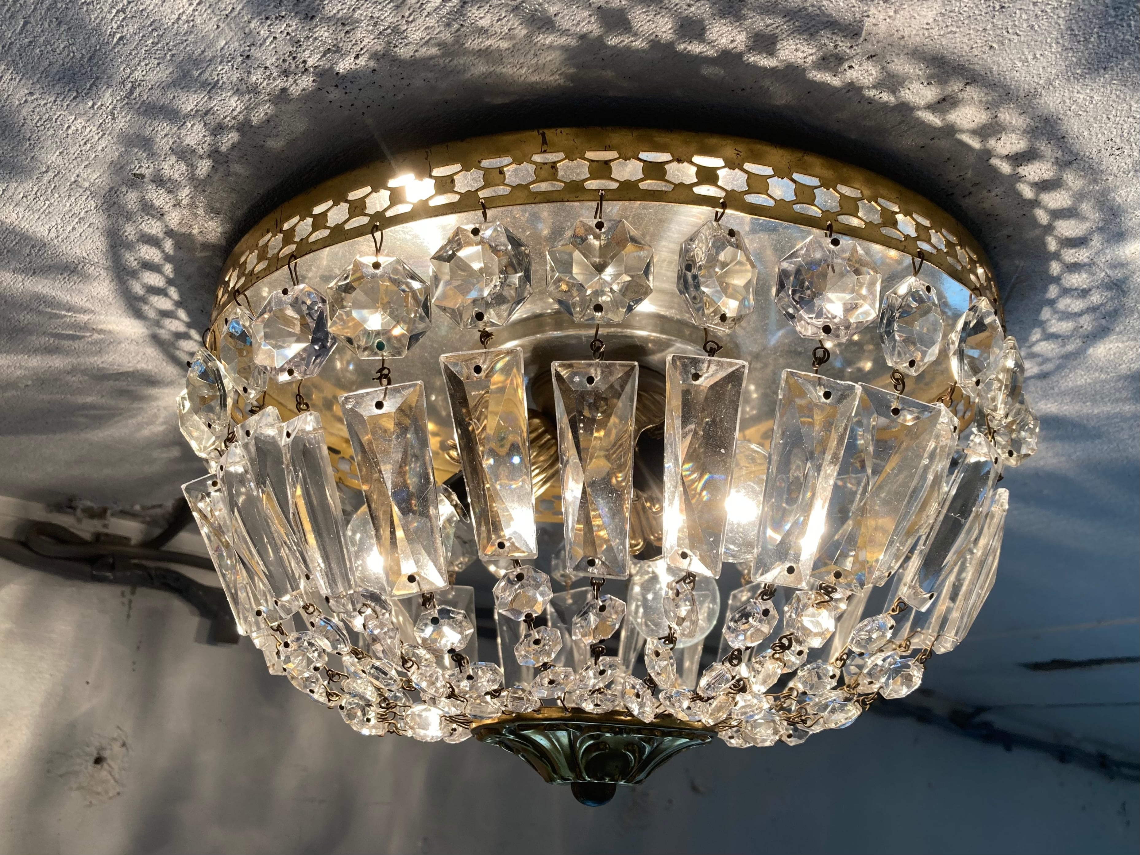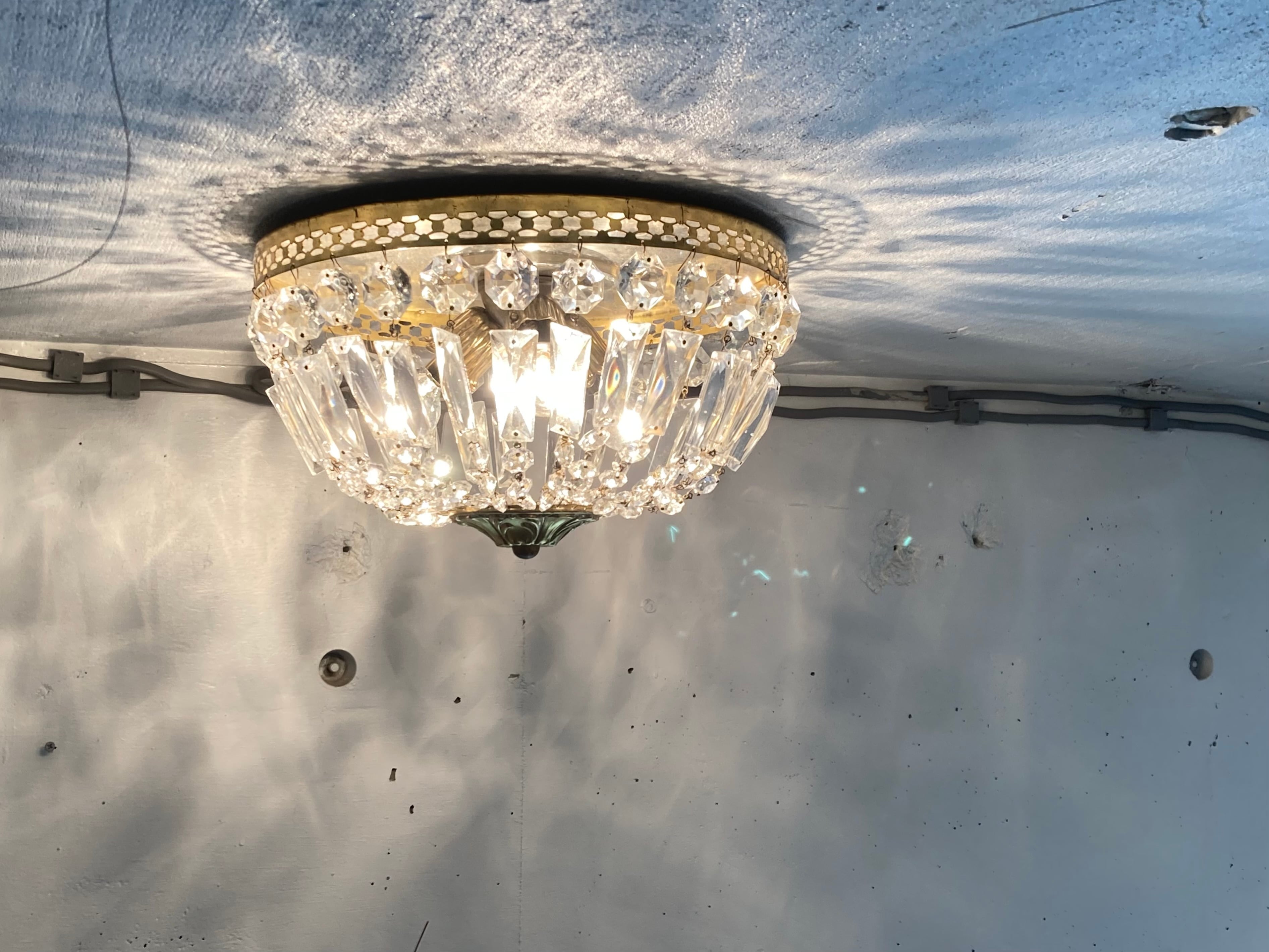 フランス アンティーク シャンデリア 3灯 プリズム 引掛シーリング対応