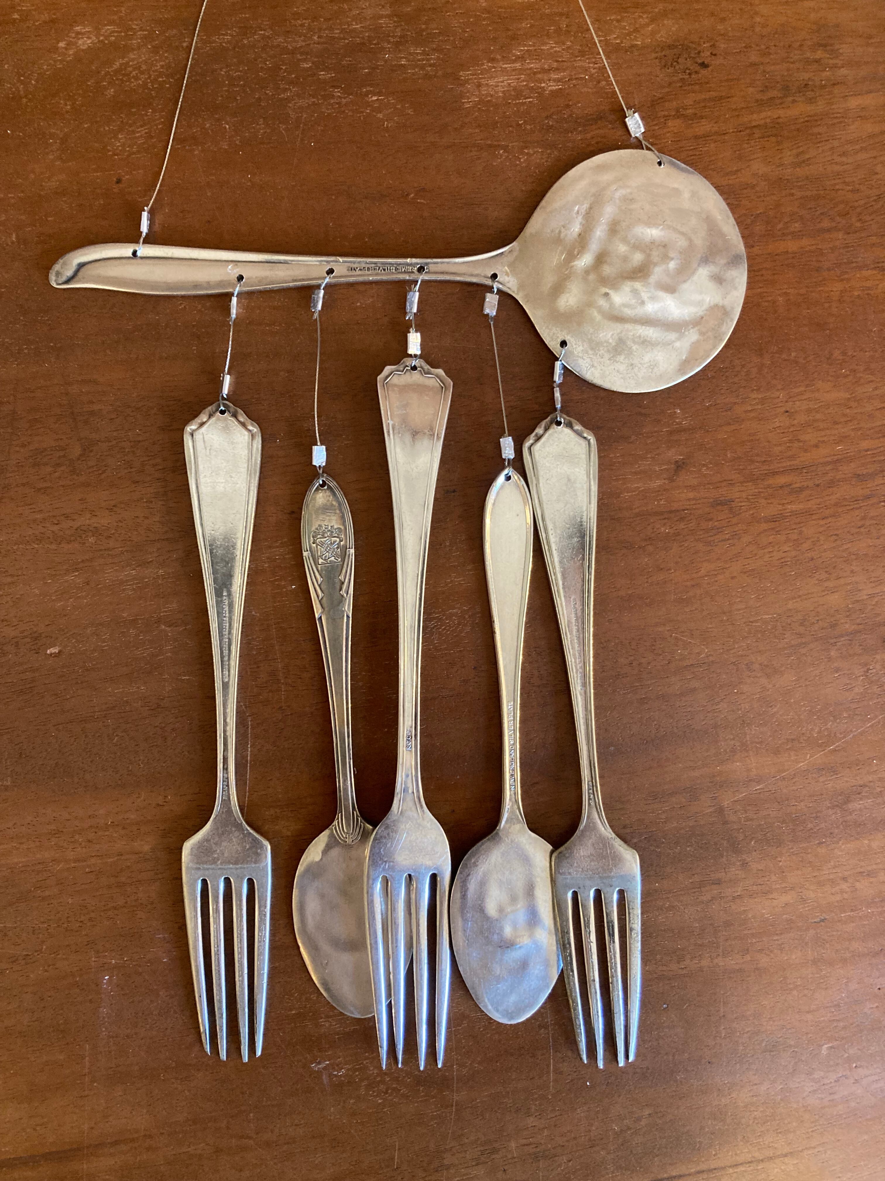 アメリカとフランスのヴィンテージカトラリーを使ってウインドチャイムを作っています。